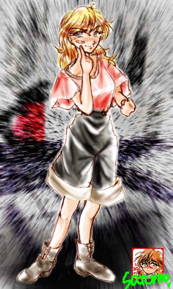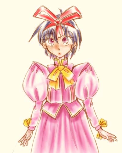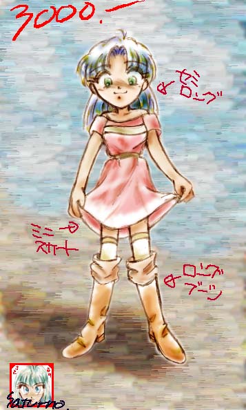 <97/11/13> t−moritaさんが常緑亭3000ジャスト踏んだ記念。(ナンヤソレ) リクエストにより、フリルな服を見ているMOにー…… フリルな服が好きな方は、絶対見ないで下さい(笑) さとるののセンスの無さが爆裂消球してます……<(−−;) |