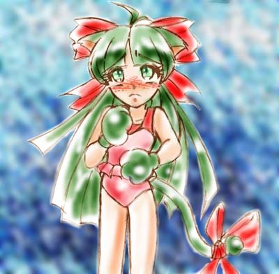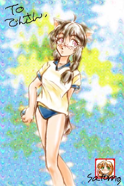 <97/10/05> 常緑亭伝言板に一番に書き込み記念(笑) でんさんに記念品贈呈〜 リクエストにお答えして(笑)三つ編みすきゃにーです〜 |