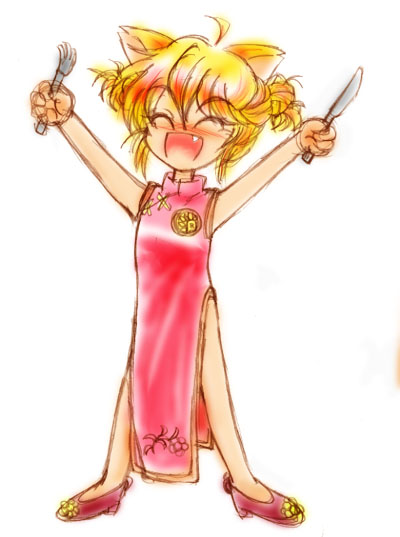 <97/11/01> エルリングさんとのメールのやり取りで、さとるのが出席した友人の披露宴に、えんぴつにーと、けしごむにーと、もばいるにーがついてきたというくだりがありまして、参考画像の「ちゅうかなけしごむにー」です。 ちなみに、えんぴつにーは洋装、もばいるにーは和装。 |