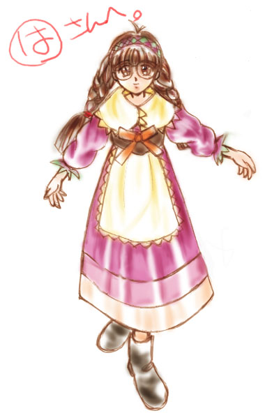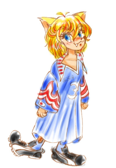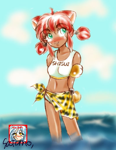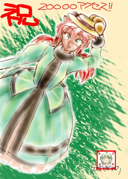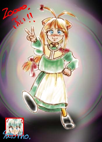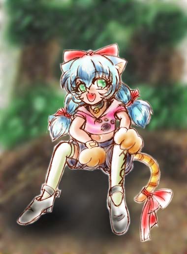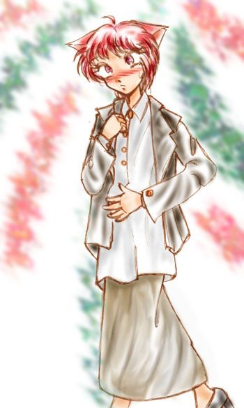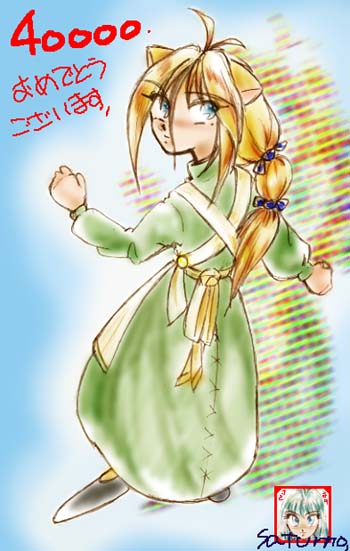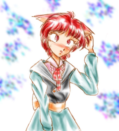 | 紫彗様のSHISUI−HOUSE 20000アクセス記念 紫彗様の所のネコミミメイド、ノーラですぅ〜。 赤毛のアン風にアレンジしてみました……って、原形をとどめてないぞ(^^;) 本物はもっと、ぷにっとかわいいので、見たこと無い人は見に行くのだ。 | |