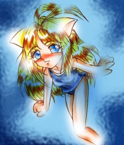 <98/07/18> T381さんところのクリーム君を、プールに誘いに行ったたぶれっとにー(妹)。 たぶれっとにー(妹)「クリームちゃん! 遊びましょ!! G(^▽^)」 |