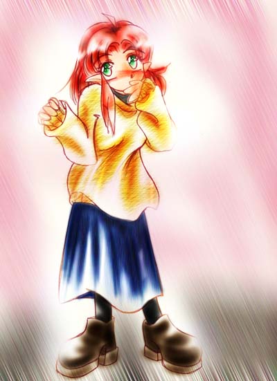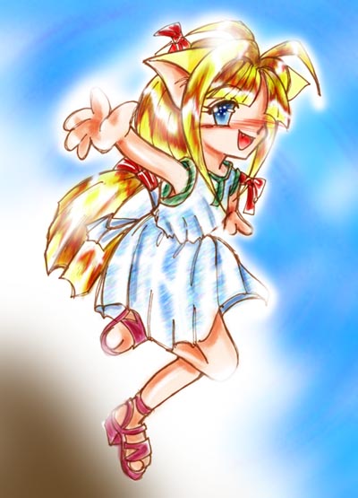 <98/09/30> ラーナさんが常緑亭の22222ヒットを踏んだ記念です。 えんぴつにー希望だったので 「ご飯の呼び出しをするえんぴつにー」(笑) |