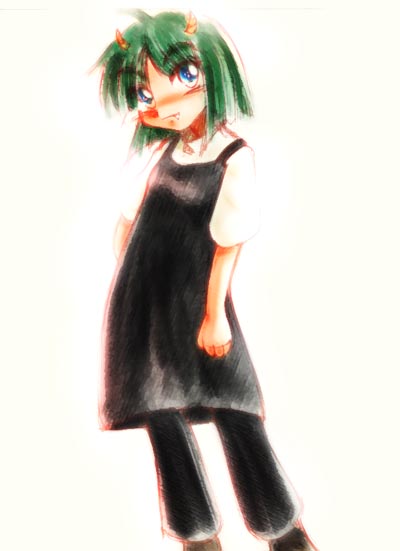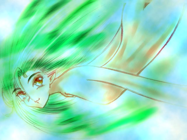 <99/12/06> 「妖精復活同盟」にメチャ久しぶりの献上物。 海の精……の予定。(予定ってなんやねん(笑)) ボディラインとか、ワザとヘンに描いたつもりなんですが、いつもヘンだから変わりませんでした。(泣) |