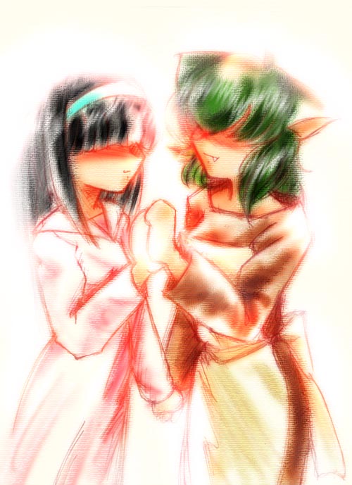 <99/11/13> 「銀」さんにHP復活記念ほか。 異種間異色目隠れペア、でばやん&BR。 ……さしあげ物って名目で、いろいろ効果試してるな、さとるの。 しかもことごとく失敗してるし。 |