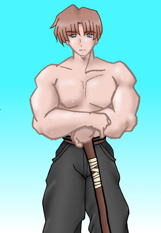 筋肉質の優男を表現するために、上半身、特に筋肉部分を実験的に筆ペンでペン入れしてみた」