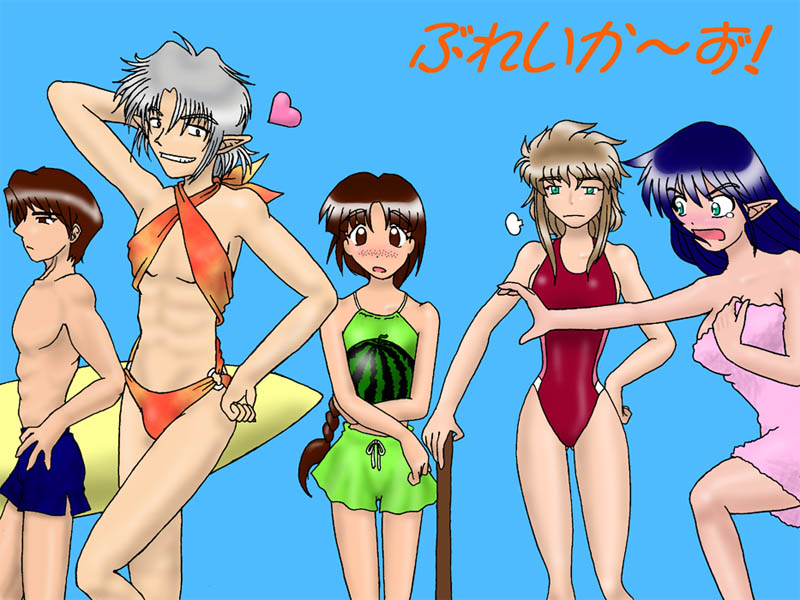 「パーティページのトップにも使っていただいた問題の水着集合絵(笑)」
