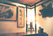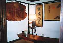 「慕雨軒茶舎」 国父記念館駅ちかく、TV局のそば。 開店間もなく着いたので、客は私たちだけ。店の人がなかなか出て来なくて、ちょっとあせる。 朝昼兼用で食事もしようと思っていたのだけれど、早過ぎて準備ができておらず、お茶だけいただく事に。