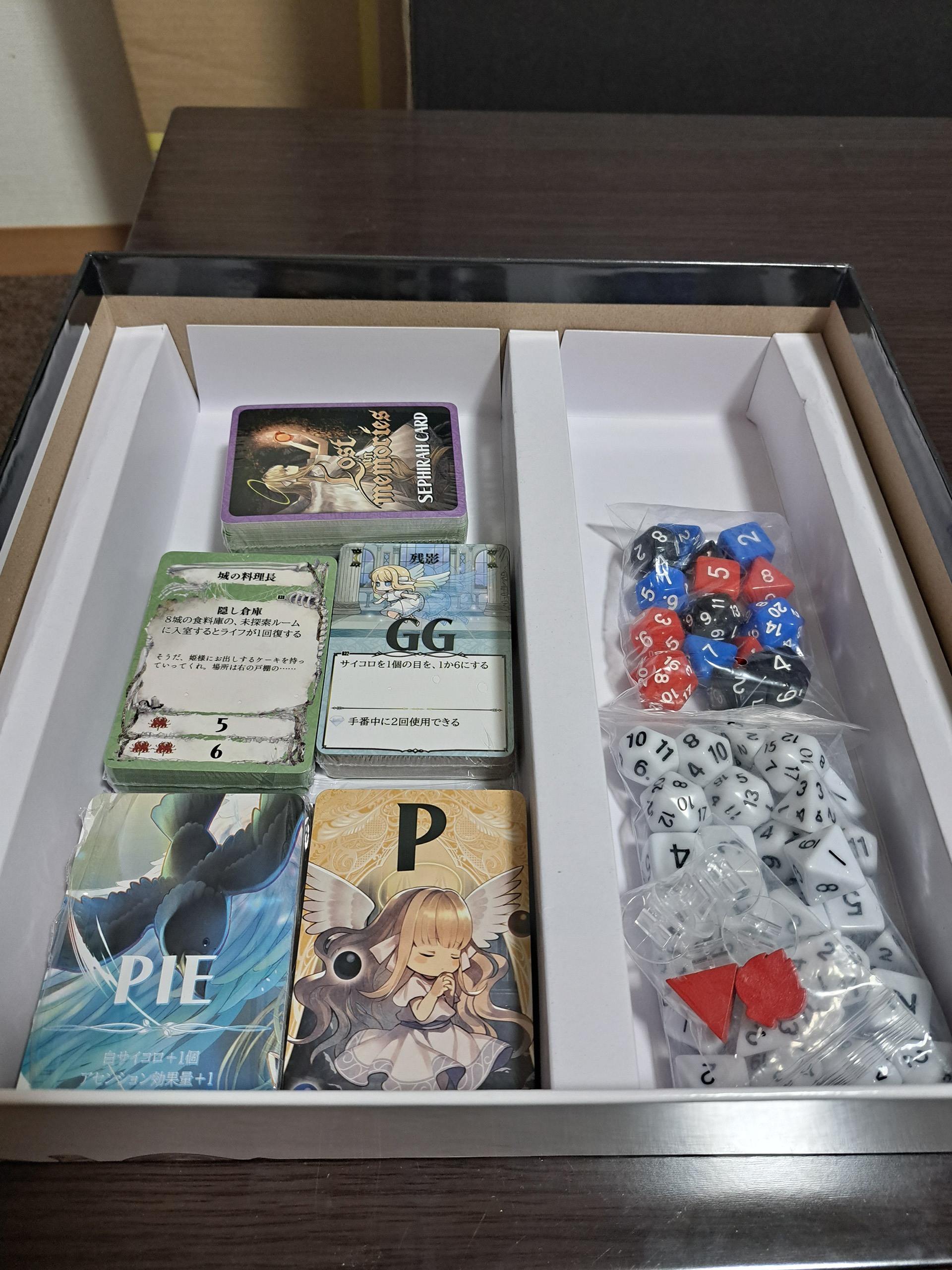 ゲームボード 50x96cm 1枚 ゲームカード 290枚(英訳カード 86枚) ゲームカード(2倍サイズ) 11枚 従者スタンド 5個 スタンド用台座 5個 マーカー 2個 チット 193枚 4面体サイコロ 9個 6面体サイコロ 9個 8面体サイコロ 9個 12面体サイコロ 9個 20面体サイコロ 9個 マニュアル 2冊 |